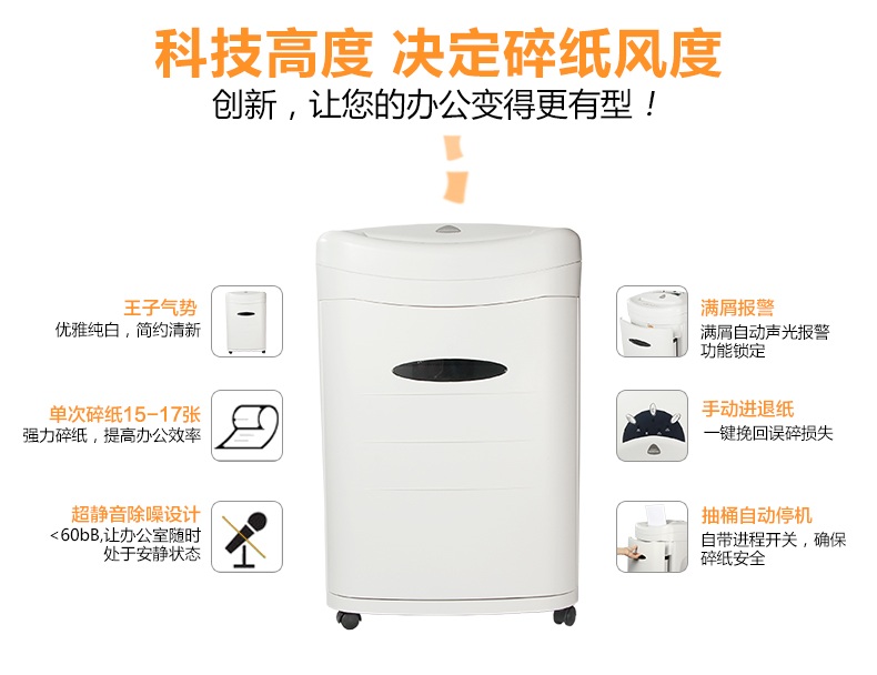 碎紙方式:段狀碎紙效果:2x12mm碎紙能力:15-17張/次碎紙速度:6碎紙寬度:220mm