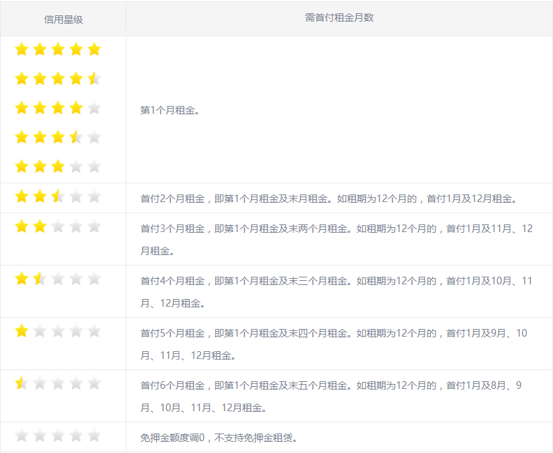 2.租賃期內,每月15日按時交納租金且所有訂單均不欠費,星級增加0.5星。